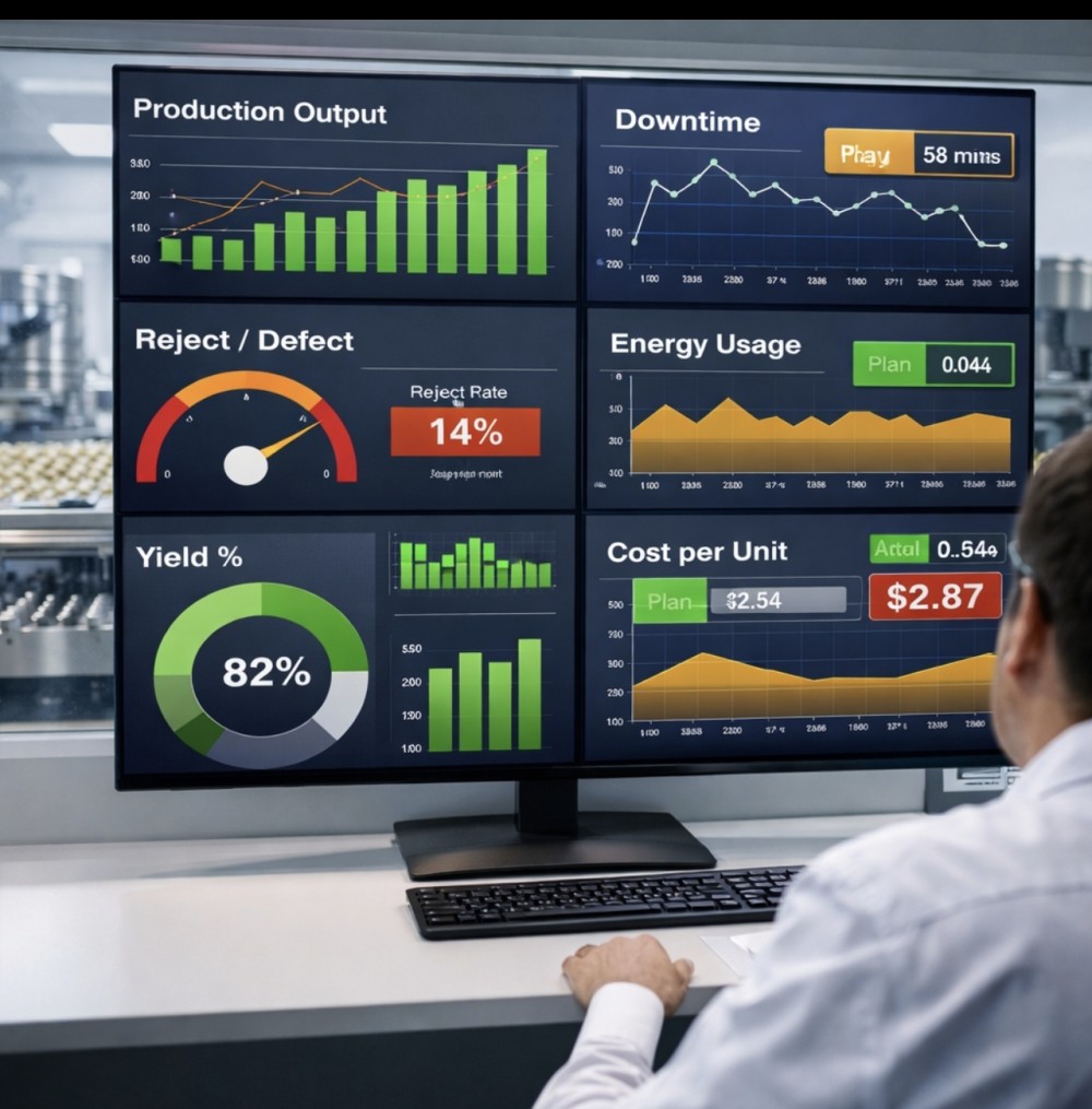 👉 จะมี Dashboard การผลิต ที่ผู้บริหารสามารถดูได้ทุกวัน